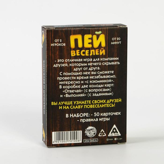 Купить игра для компании "пей веселей" 50 карт от 180 руб. с доставкой до пункта выдачи в Зеленоградске. Интернет магазин ДекаМаркет. Оплата при получении.